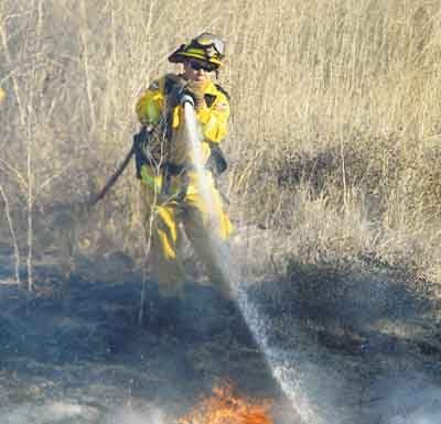 A brush fire raced up the hillsides behind Butch Drive northeast