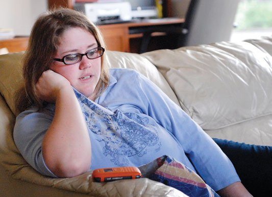 Deena Morsilli, 16, pours fake blood over real pigs feet in the
