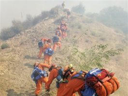 Volunteer Mike Torres chatted as he grilled chicken thighs and