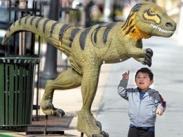 Carmen Martinez and her 3-year-old son Enrique stroll through