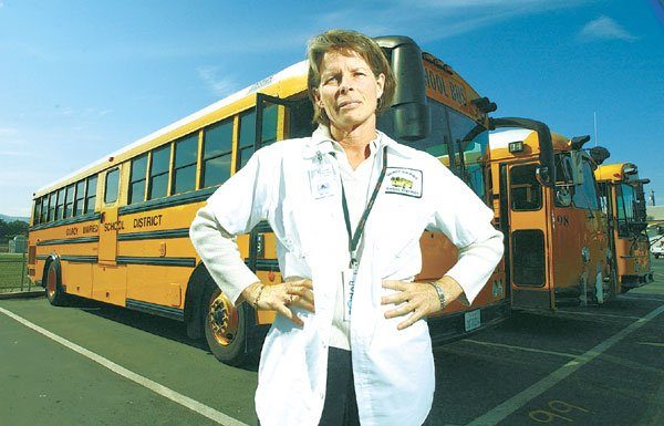 Gilroy Unified School District bus driver Rebecca Scheel rallies