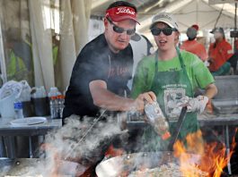 Phill Laursen speaks to a large crowd that packed the Willey