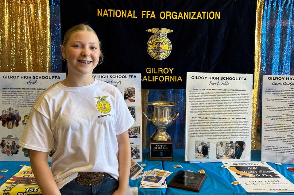 FFA is a nationwide youth organization that seeks to develop life skills among teenagers by introducing them to the agricultural industry. Johnson noted that Gilroy High FFA was named the 2025 South Coast Region FFA Chapter of the Year—an accomplishment she noted that she and her classmates are particularly proud of.