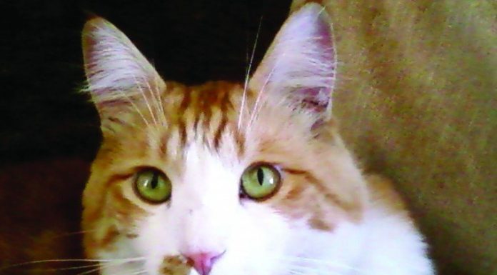 Aidan has been missing since Aug. 20. He is a medium haired orange and white cat, with a distinctive orange spot on his right side of nose. He was wearing a blue collar with an ID tag shaped like a cat face. If you see him, call Terri Markey at (408) 981-7260 or the San Martin Animal Shelter at (408) 686-3900.