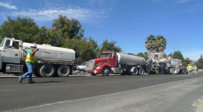 Five days of work to repave a section of Santa Teresa Boulevard were eliminated thanks to the use of a “cold-in-place” recycling process, according to the machine’s operator.
