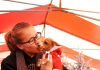 Rosy Bergin holds a plate of cioppino