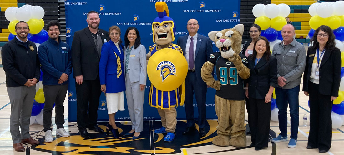 SJSU and GUSD officials unveiled the program Oct. 14 at a celebratory assembly at Christopher High School in Gilroy—an event that featured the Cougars’ and Spartans’ mascots, as well as local high schools’ marching bands and cheerleading teams.